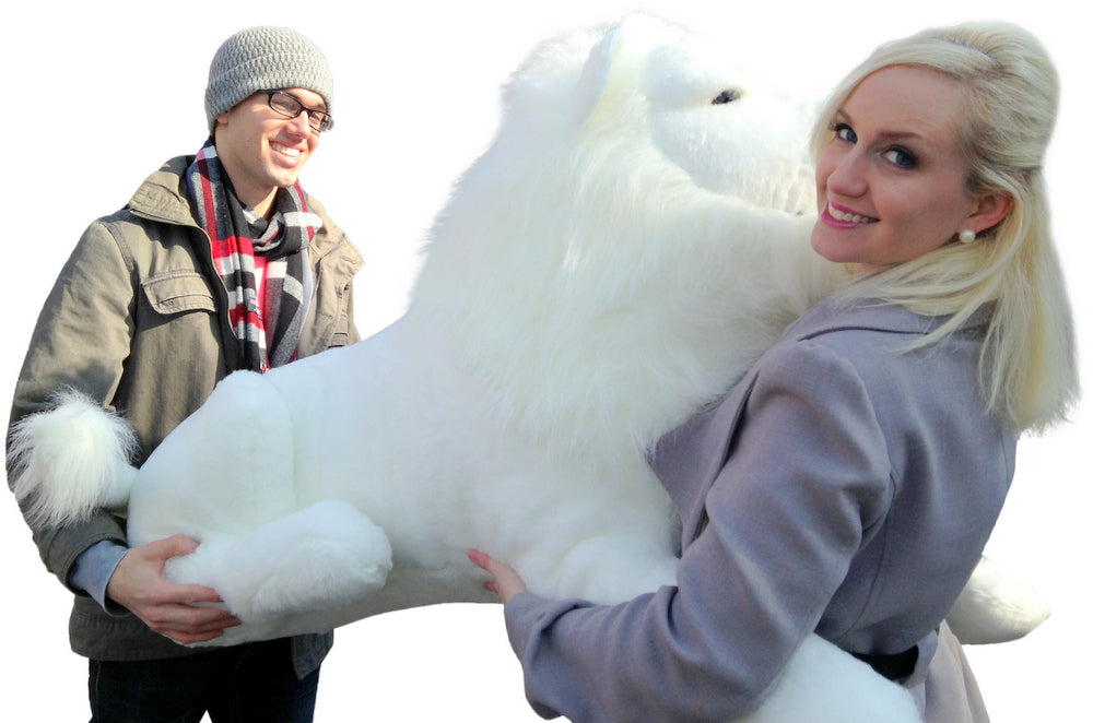This amazingly huge, soft stuffed WHITE Lion is guaranteed to impress someone special with it's giant size, gentle softness and high quality craftsmanship (as it is 100% made in the USA)!