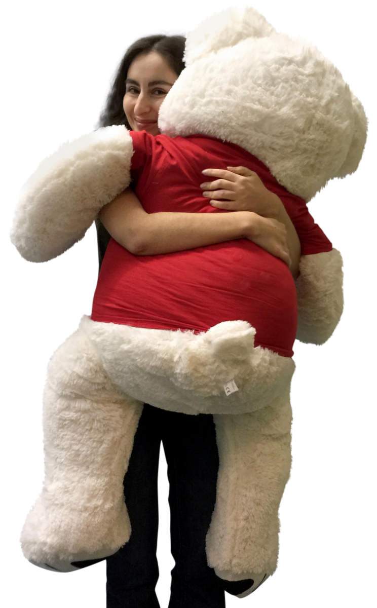 Giant Valentine Teddy Bear 52 Inch White Soft, Wears Removable T-shirt I Love You This Much