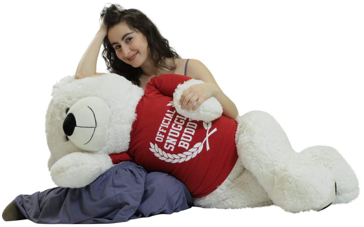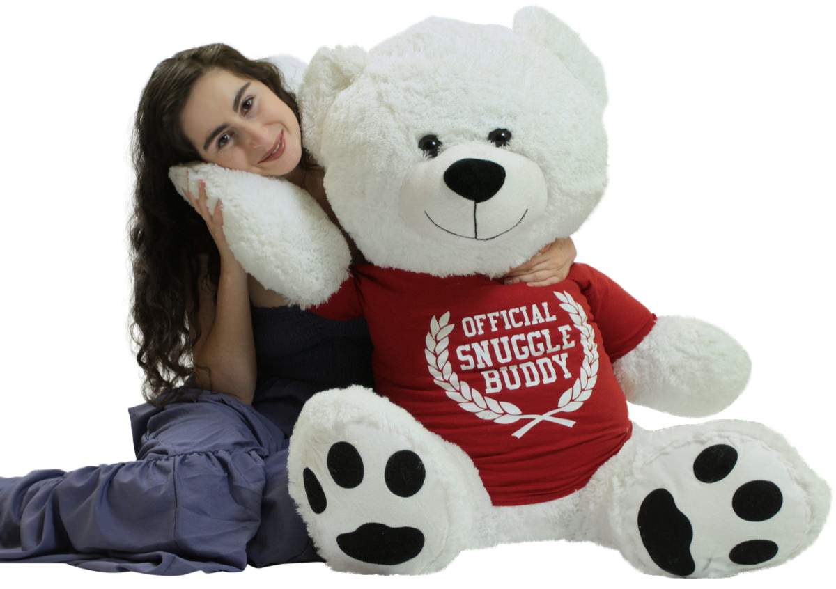 Giant White Teddy Bear 52 Inch Soft, Wears Removable T-shirt Official Snuggle Buddy