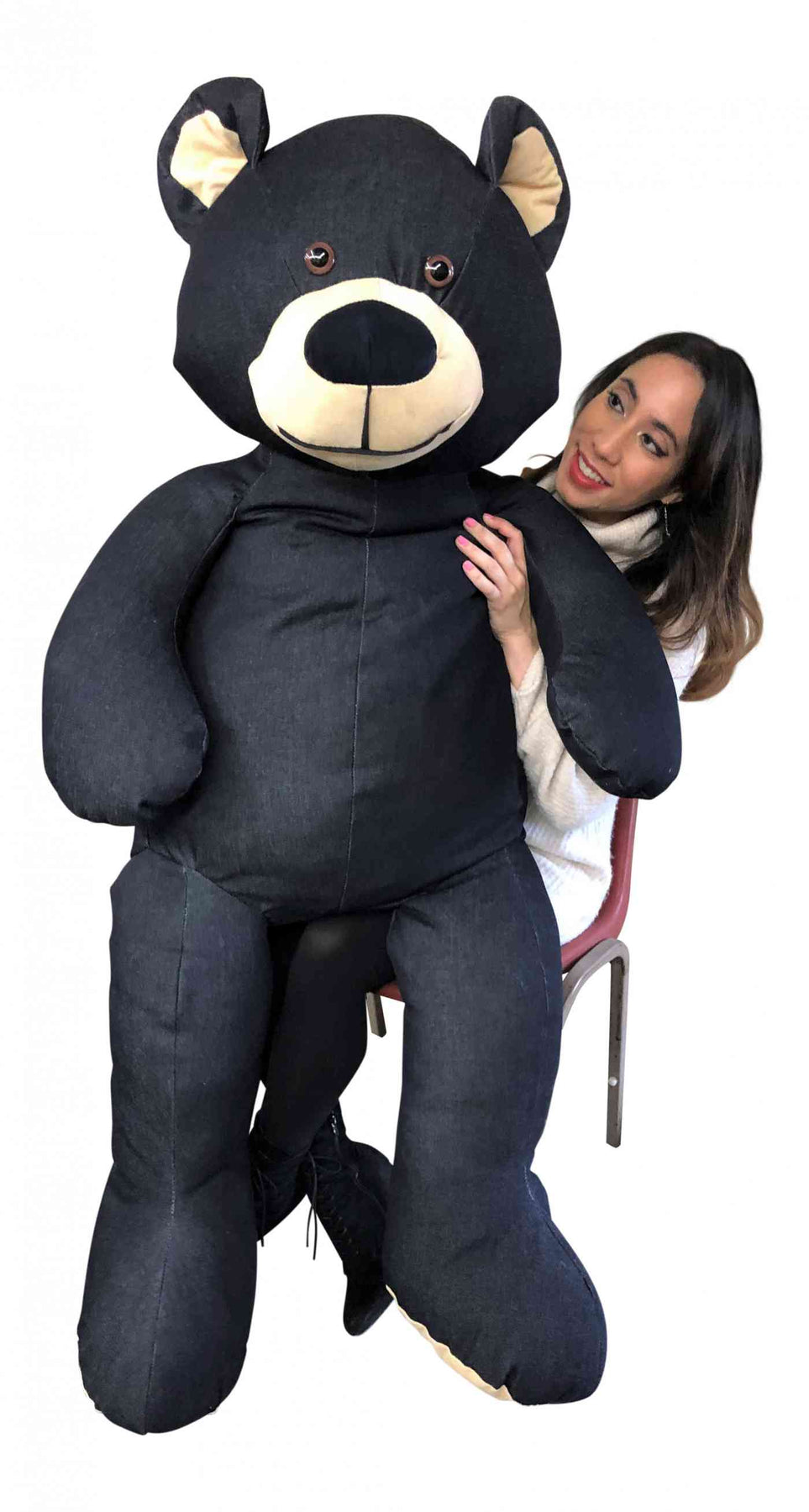 Giant denim teddy bear 5 feet tall made in the USA by Big Plush