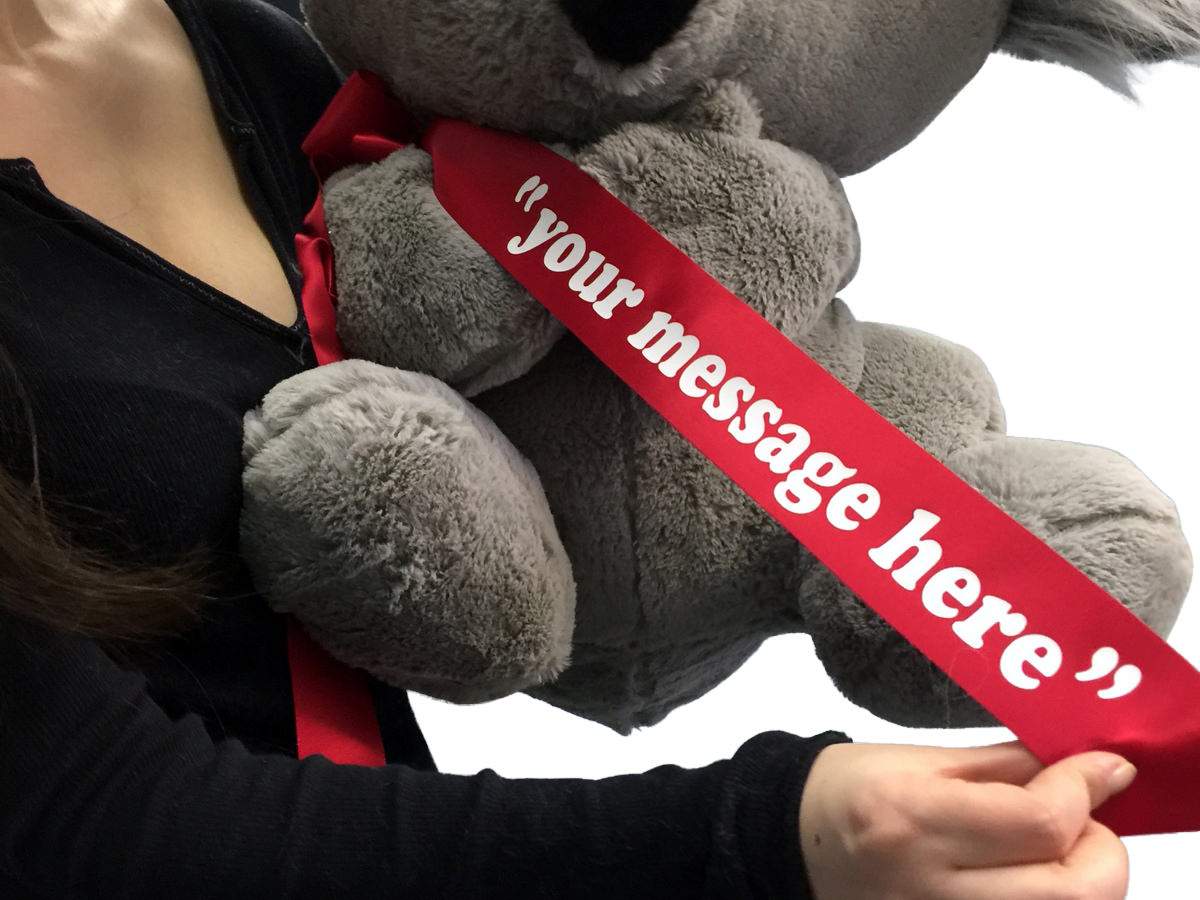 Be sure to enter the text that you want imprinted on your Koala's removable neck ribbon in the text box that asks for it.