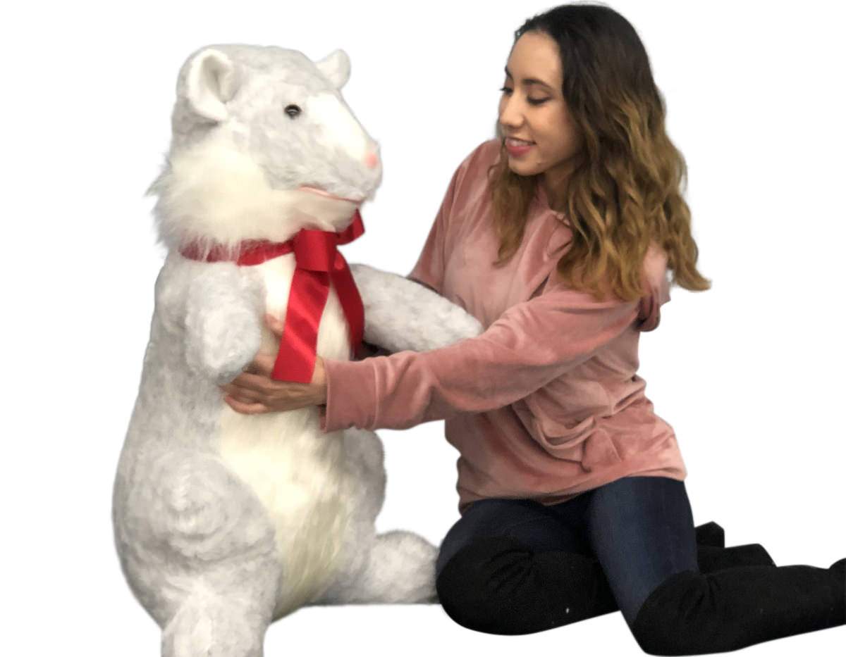 It is stuffed SQUEEZABLY SOFT and will provide years of huggable squeezable love. You will absolutely LOVE it. The highly detailed head, face and body makes this gray plush Hamster so amazingly LOVABLE! Quality-made with premium fabric and an exquisite, plush fur that shimmers in the light (like mink). Very unique, and made with superior craftsmanship; it has a supple, squeezably-soft, premium plush body. It's rich multi-tone, mink-like fur is both luxurious and dazzling. This whopper of a plush rodent is made with great ATTENTION TO DETAIL. Real QUALITY.