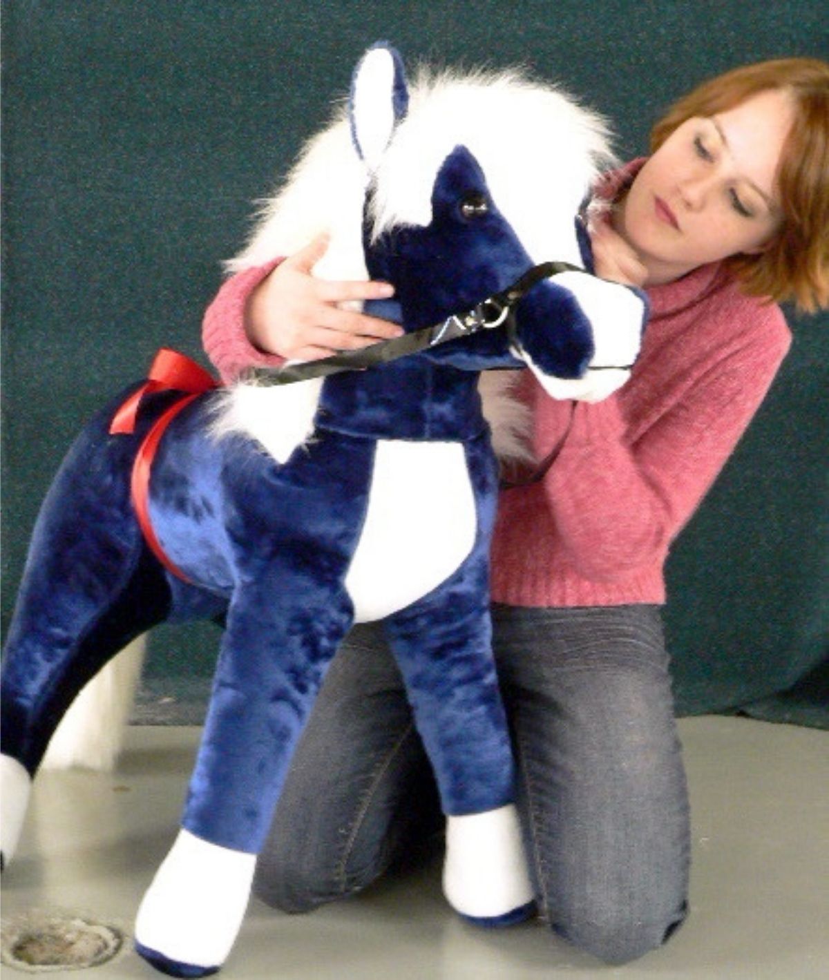 This Beautiful, Super-Sized DARK BLUE COLOR STUFFED HORSE PONY is BIG! BIG! BIG!and CUTE! CUTE! CUTE!